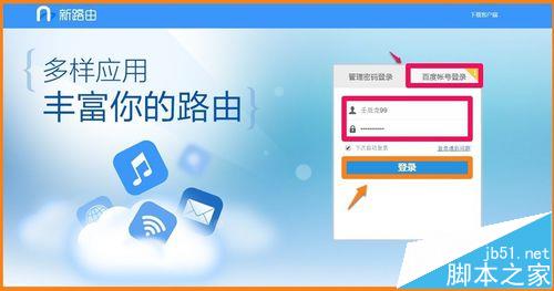 1、我們再在瀏覽器中輸入網關地址,回車,綁定百度帳號,點擊【百度帳號登錄】,輸入百度帳戶ID和密碼,點擊:登錄;