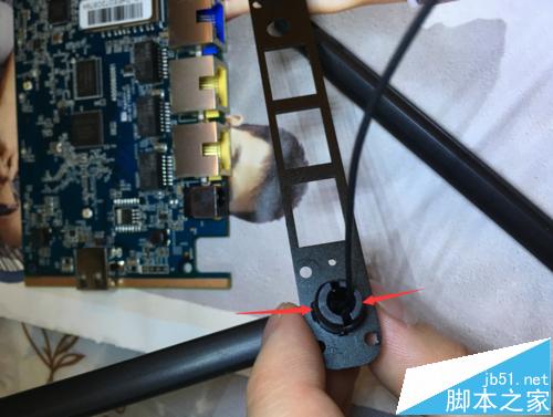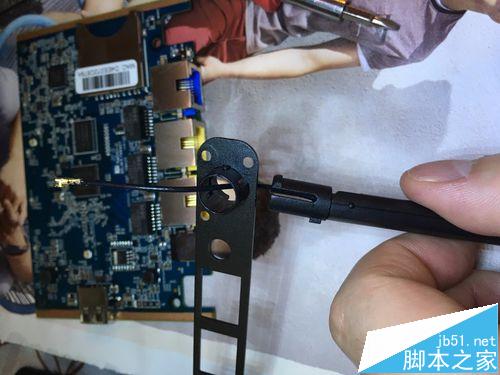 3、把擋板靠近路由板子,連接ipx接頭,要對準用力壓一下,有“啪”的聲音就緊了。