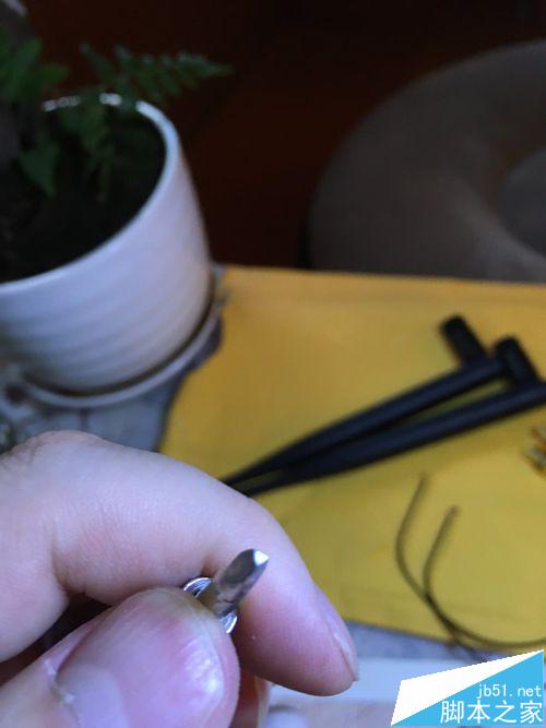 1、準備要用到的工具及原料,拿起螺絲刀開始拆機,注意把無線路由的天線放倒好拆,此路由為三角型螺絲孔,我是自己磨了一把螺絲刀。