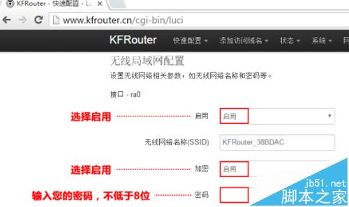 在快速配置頁面找到無線局域網配置,如圖進行設置