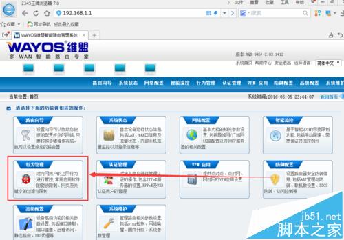 2、在功能選項中,我們找到“行為管理”,并點擊進入
