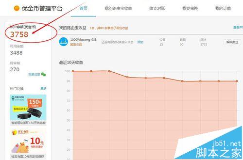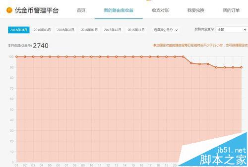 2、點(diǎn)擊“我的路由寶收益”,可以看到本月每天賺取優(yōu)金幣的情況,如下圖