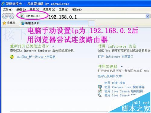 4、如果自動無法獲取到路由器分配的IP地址,那么只有嘗試手動設置電腦的IP地址,再連接路由器了。查看路由器背面的標簽,標的默認LAN口地址是192.168.0.1,于是打開瀏覽器輸入192.168.0.1,回車