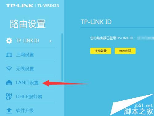 3、進入路由器設置后,點擊左邊設置選項的[LAN口設置]