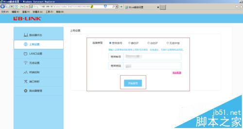 2、必聯BL-AC886M無線路由器上網設置:根據自己的需求選擇連接類型,我選擇的是寬帶撥號,輸入電信運營商給的寬帶賬號和密碼,開始撥號就可以連接上網了。