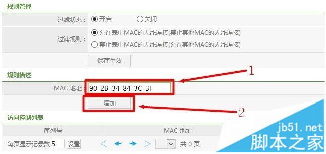 4、在“MAC地址”后面填寫張三和李四計算機的MAC地址——>點擊“增加”。