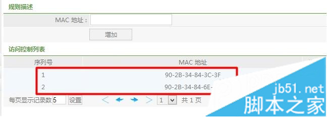 5、在“訪問控制列表”中可以看到剛才添加的張三和李四的計算機的MAC地址。