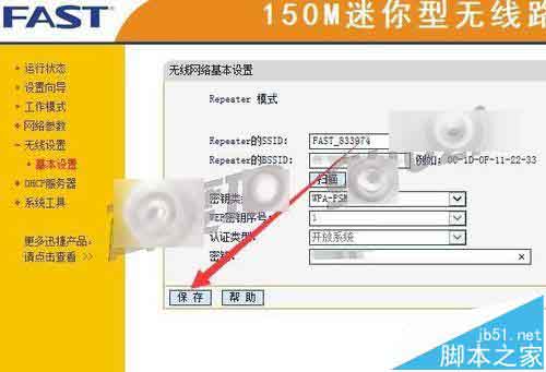 6、由于Repeater中繼模式的SSID為上一級的SSID,此處只要輸入相應的密碼,點擊保存.