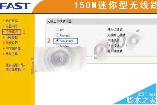 2、登錄成功后,進入工作模式,選擇Repeater中繼模式,然后點擊保存.