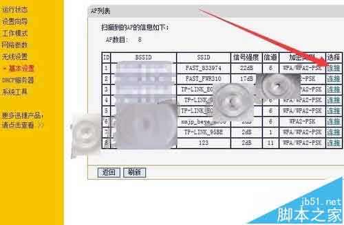 5、在出現的掃描到的AP列表中,找到自己的無線信號,然后點擊 連接.