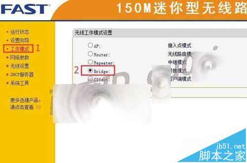 2、錄成功后,進(jìn)入工作模式,選中Bridge橋接模式后,點(diǎn)擊保存.