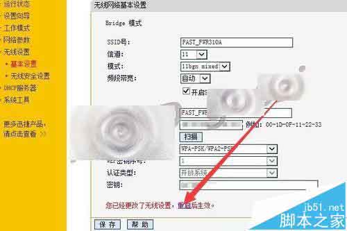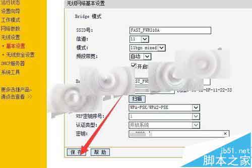 6、在無(wú)線網(wǎng)絡(luò)基本設(shè)置中,將信道改為剛剛記下的信道數(shù),并輸入密鑰,然后點(diǎn)擊 保存.