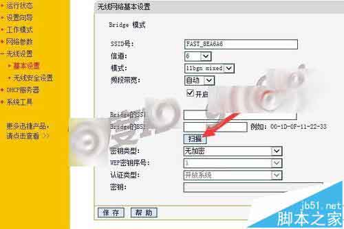 4、重啟后,按F5刷新,然后進(jìn)入無(wú)線設(shè)置-基本設(shè)置,此處可以看到Bridge模式的提示,點(diǎn)擊 掃描