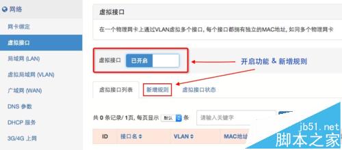 1、進(jìn)入“網(wǎng)絡(luò)”-》“虛擬接口”,啟用“虛擬接口”功能