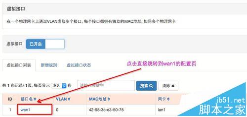 3、創(chuàng)建成功后,點(diǎn)擊wan1進(jìn)入WAN口配置頁面