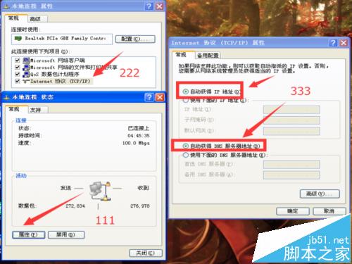 4、先打開本地連接,點擊屬性,點擊協議,設置自動獲取,WIN7也是一樣。