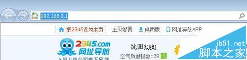 5、我們在打開一個瀏覽器,在瀏覽器輸入地址欄內輸入:192.168.0.1(這個是我的路由器IP地址)您買的路由器未必是這個IP地址,以路由器背面參數為準,回車進入路由器內部