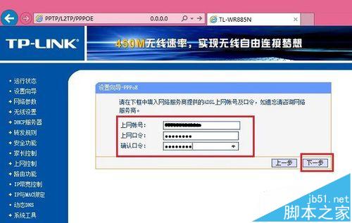 9、大家輸入自己的上網寬帶用戶名和密碼,再下一步。