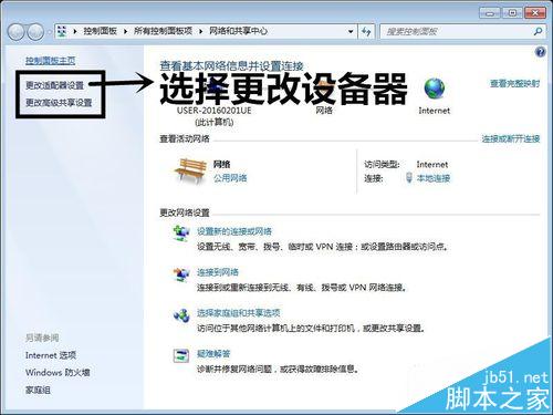 4、電腦開機,我們進入電腦里面設置一下,我以Win7系統為例給大家顯示一下,首先找到桌面上的網絡,然后鼠標右鍵點擊它選擇屬性,然后我們點擊一下(更改設備器設置),接著本地連接(右鍵屬性),選擇里面的 (協議版本4)(TCP/IP),里面內如可以是(自動獲取IP地址)。