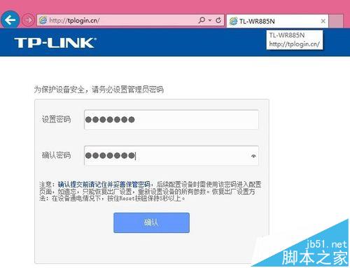 7、其他步驟同上,我們直接進入路由器設置界面,進入路由器后提示設置一個路由器登入密碼(自己設置記住就行)然后確定。