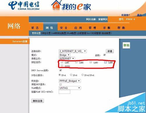 3、網絡→寬帶設置→下拉箭頭→2_Internet_B_VID。去掉綁定選項中的全部對勾,然后拖到網頁最下方點確定等待保存