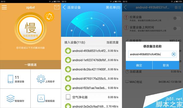 除了通過網頁對路由器進行設置之外,愛國者聚路由還提供了手機端APP,安卓和iOS系統均可下載。在聚路由的手機端APP中,同樣可以進行連接設備查看等操作,而且手機端APP支持對連接設備添加備注,比網頁端更加方便。