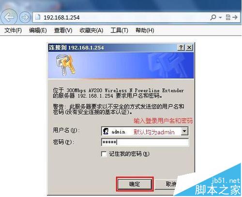 3、接下來設(shè)置接收端,同樣用電腦連接電力貓AP,然后在瀏覽器中輸入192.168.1.254,然后輸入用戶名與密碼