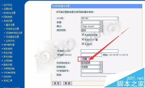 4、當開啟了WDS功能后,在下方會增加更多的選項,在此處,點擊 掃描,對周圍的WIFI無線信號進行掃描.