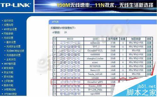 5、過了一會兒,掃描到的AP的信息列表就出來了,在列表中找到家里的光貓對應的wifi信號名稱.