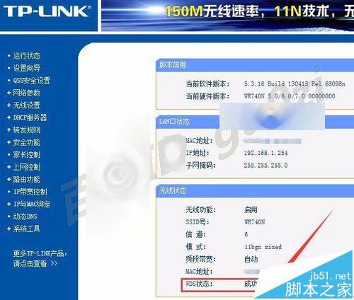 7、保存后,我們返回到 運行狀態,在無線狀態下的WDS狀態,經過初始化后,轉為 成功.說明無線路由器與光貓的橋接順利完成.