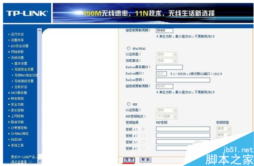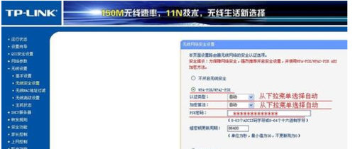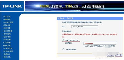 10.點擊“無線設置”,找到打開“無線安全設置”,設置你的TP_LINK路由器無線網密碼并保存如下圖。