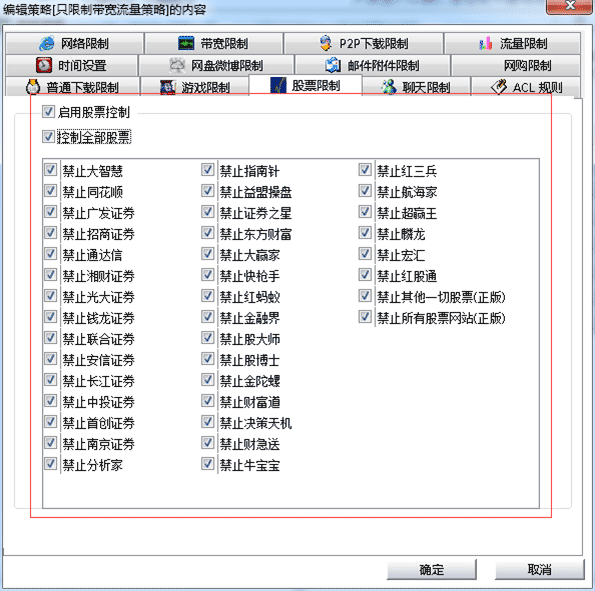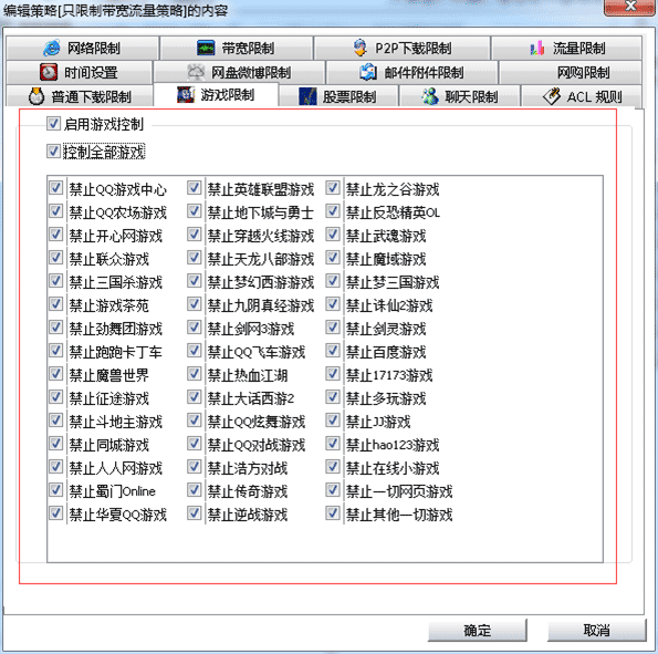 此外,通過聚生網管系統,還可以禁止局域網玩游戲、禁止局域網炒股等,防止員工上班時間開小差的行為,規范員工文明上網,提高網絡資源的利用效率,提升員工工作效率。如下圖所示: