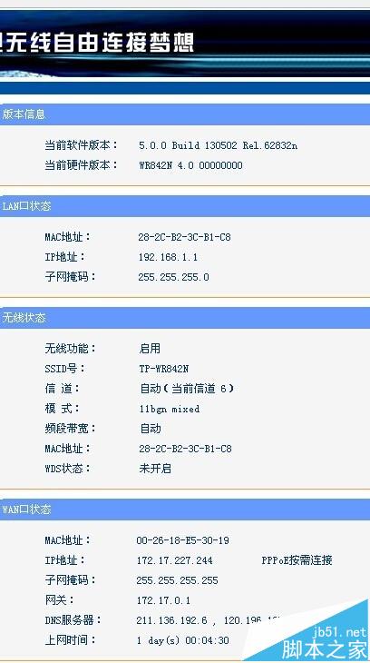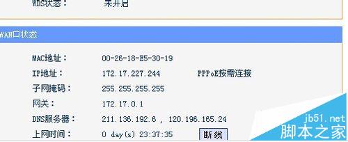 5、找到WAN口狀態(tài)那里有你的DNS服務(wù)器地址