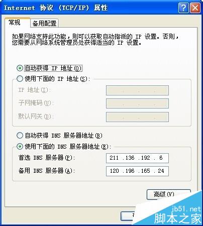 2、鼠標(biāo)雙擊Internet 協(xié)議(TCP/IP)出現(xiàn)下圖 這個(gè)窗口要修改 前面自動(dòng)選擇IP地址不用改