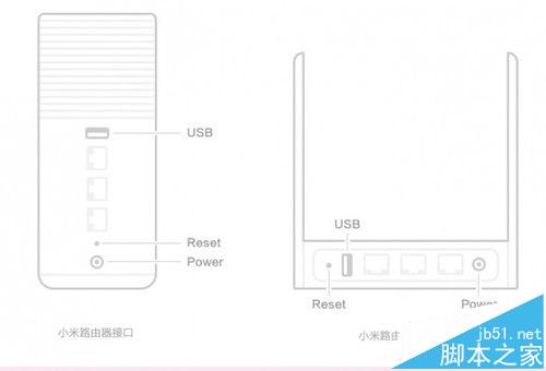 4、斷開(kāi)小米路由器電源,將U盤(pán)插入小米路由器的USB接口中,利用尖端物體或別針長(zhǎng)按Reset鍵,接通電源,待路由器指示燈變?yōu)辄S燈閃爍時(shí),松開(kāi)Reset鍵。