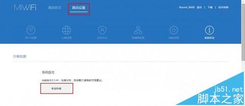 1、當(dāng)小米路由器出現(xiàn)啟動(dòng)故障時(shí),我們可以嘗試登陸小米路由器后臺(tái)Web界面,切換到“路由設(shè)置”選項(xiàng)卡,點(diǎn)擊“手動(dòng)升級(jí)”按鈕來(lái)更新小米路由器固件,以修復(fù)未知錯(cuò)誤。