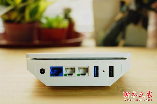 接口方面,新路由2 提供了一個WAN口、兩個LAN,兩個USB 2.0接口和一個電源接口。兩個USB接口最大支持共12T的擴展。復位鍵被放置在兩個USB接口的中間,長按五秒可以恢復出廠設置。
