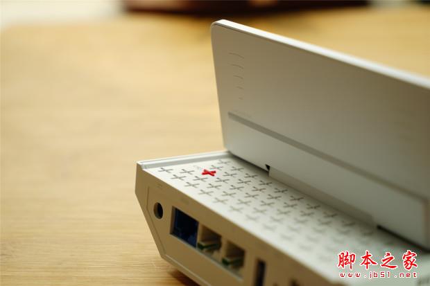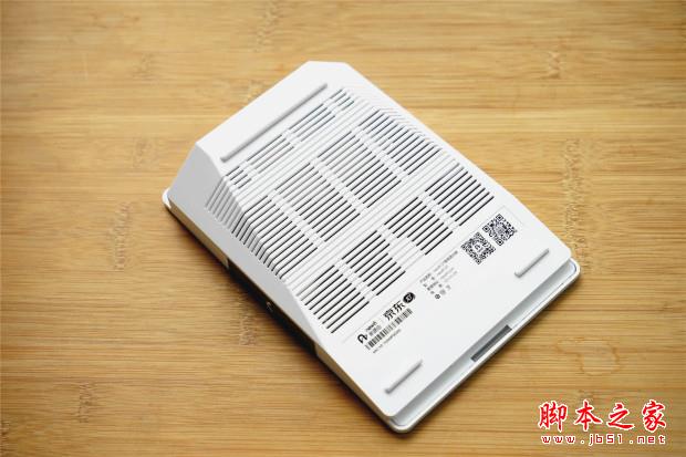 背部有三個條狀的觸角,用以穩固路由器的機身,起到防滑的作用。散熱孔分布在機背的大部分區域,畢竟散熱的狀況會影響到路由器的穩定性和耐用性。京東的圖標也在下面哦~