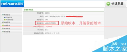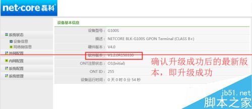 7、升級完成以后,再次登錄管理界面,查看光貓的版本,以確認升級成最新版本。升級成功后記得恢復出廠。