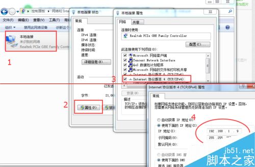 1、給光貓通上電,電腦配置和光貓是同一網段的ip地址如圖