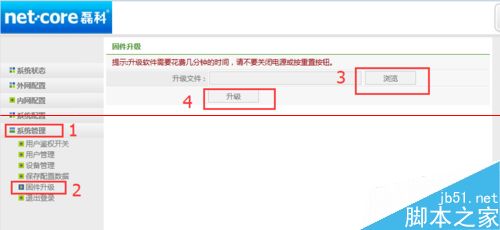 5、進入【系統管理】--【固件升級】--【瀏覽】--選中要升級的固件--點【升級】