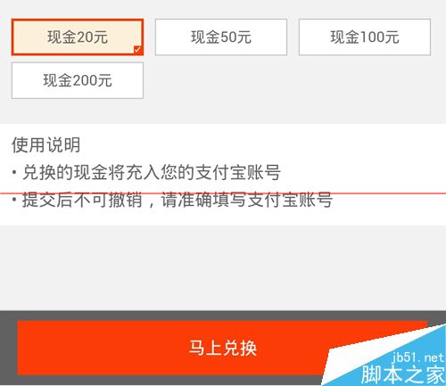 5、根據賬戶余額選擇能夠兌換的面額,然后點擊[馬上兌換]