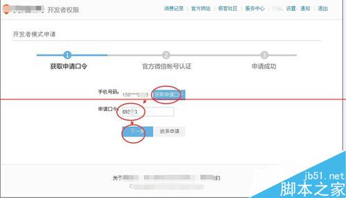 點擊獲取申請口令,手機端輸入驗證碼,點擊下一步即可。