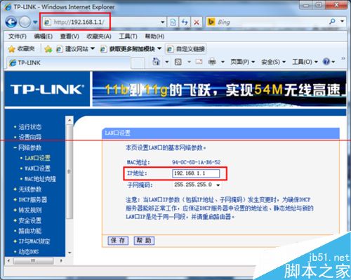 2、上圖中路由器A為TPLINK無線路由器,為第一層,通過貓直接連接外網。路由器A的后臺管理地址為:http://192.168.1.1,注意:路由器A無需做特殊設置,和平時一樣即可,此例中,路由器A的IP地址為192.168.1.1(也就是連接路由器A的電腦的網關) 。