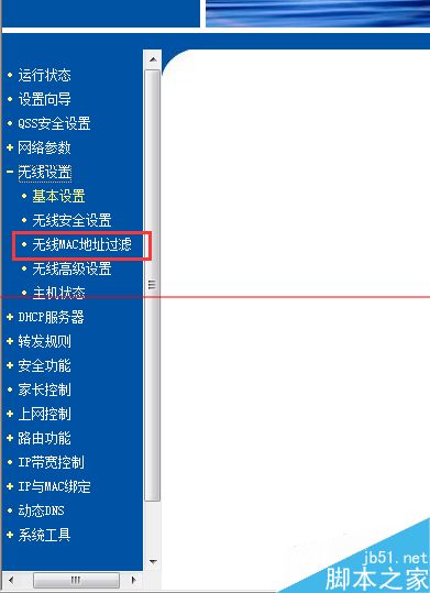 2、在左側的導航欄中,找到“無線設置”----“無線MAC地址過濾”!