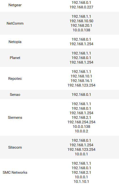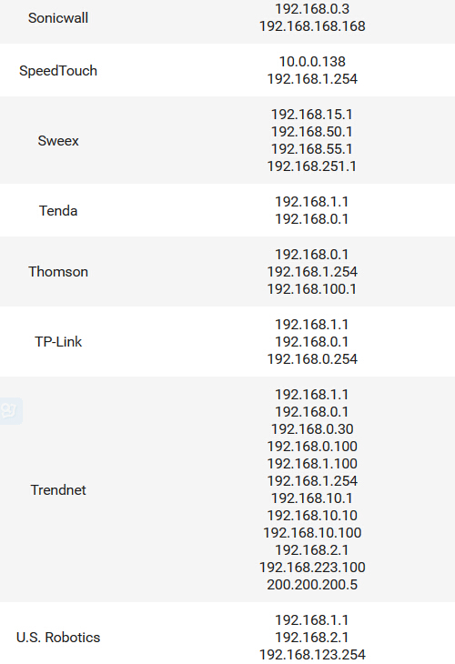如果您使用的設備品牌不在上述列表中,也可以試著訪問下RouterIPAddress.com或SetupRouter.com。