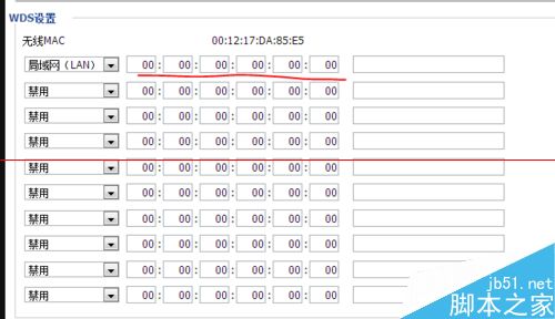 8、下面點擊WDS,在下方圖片畫線處,輸入主路由的m a c地址,輸入完畢后點擊應用,