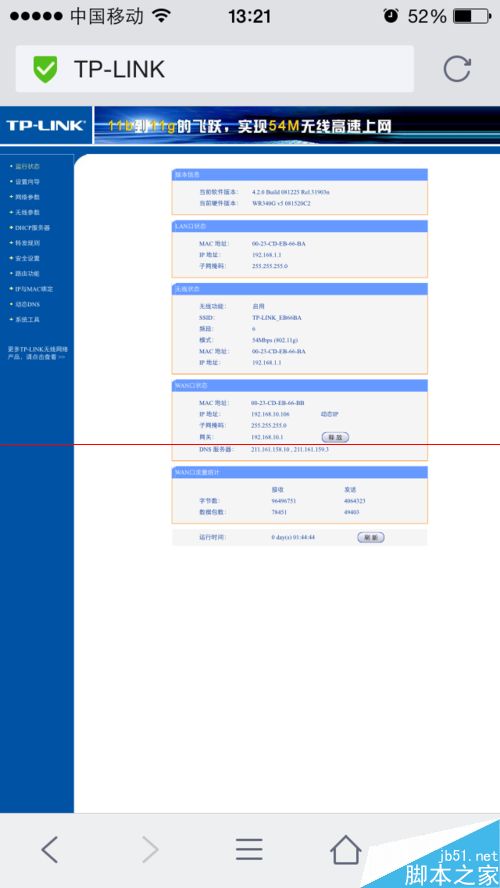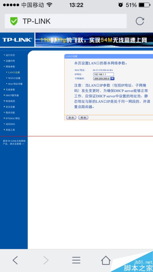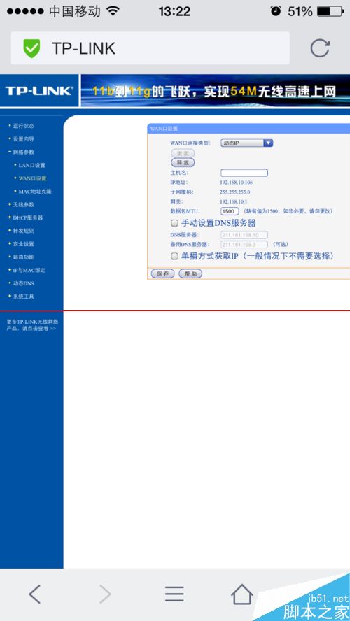 3、請(qǐng)找到LAN設(shè)置選項(xiàng),在LAN口的IP設(shè)置中,選擇自動(dòng)模式,點(diǎn)保存即可完成,這樣你就可以上網(wǎng)了!