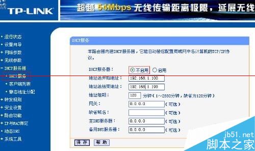 由于無線路由器WR541G默認IP為192.168.1.1,點擊IE,輸入192.168.1.1,進入無線路由器WR541G設置界面,點擊DHCP服務器--DHCP服務,關閉DHCP服務器