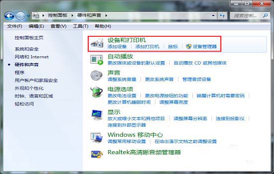3、 在彈出的界面選擇“設備和打印機”。